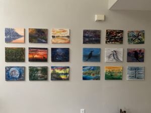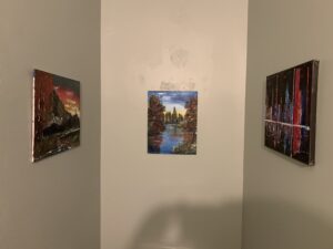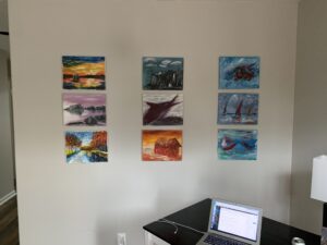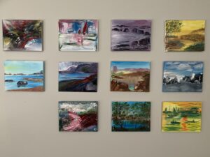 - Landscapes – originally following Bob Ross tutorials, then other “wet on wet” tutorials and, after hundreds of hours and many mistakes, on my own.